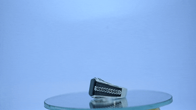 Bold, sleek, and timeless, this men’s black stone ring is designed for modern gentlemen who value style and strength. The rectangular black gemstone at the center reflects elegance and confidence, while the silver-toned band with chain-inspired detailing adds a rugged and masculine edge.